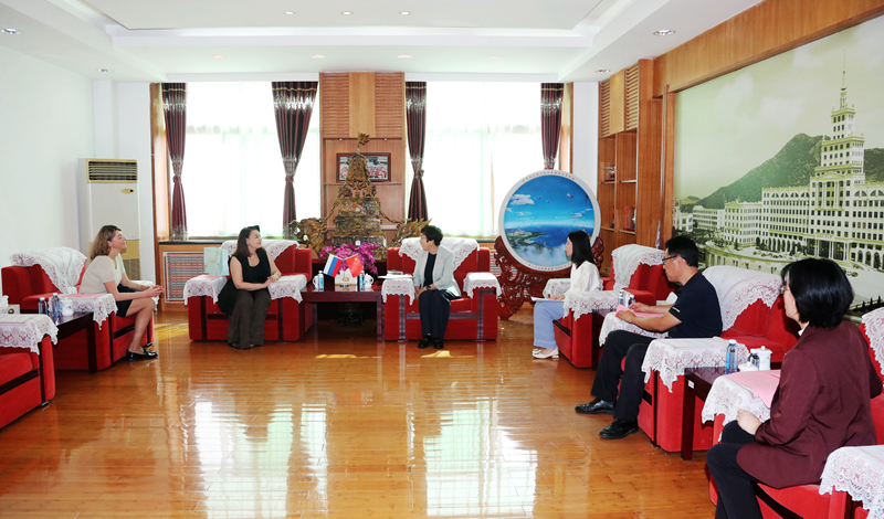 9月25日,俄罗斯后贝加尔国立大学国际事务副校长娜塔莉娅·尤里耶夫娜·古谢夫斯卡娅一行来校区访问,校区党委书记张淑娣在主楼会议室会见来访客人一行,双方就今后的合作发展亲切交流。